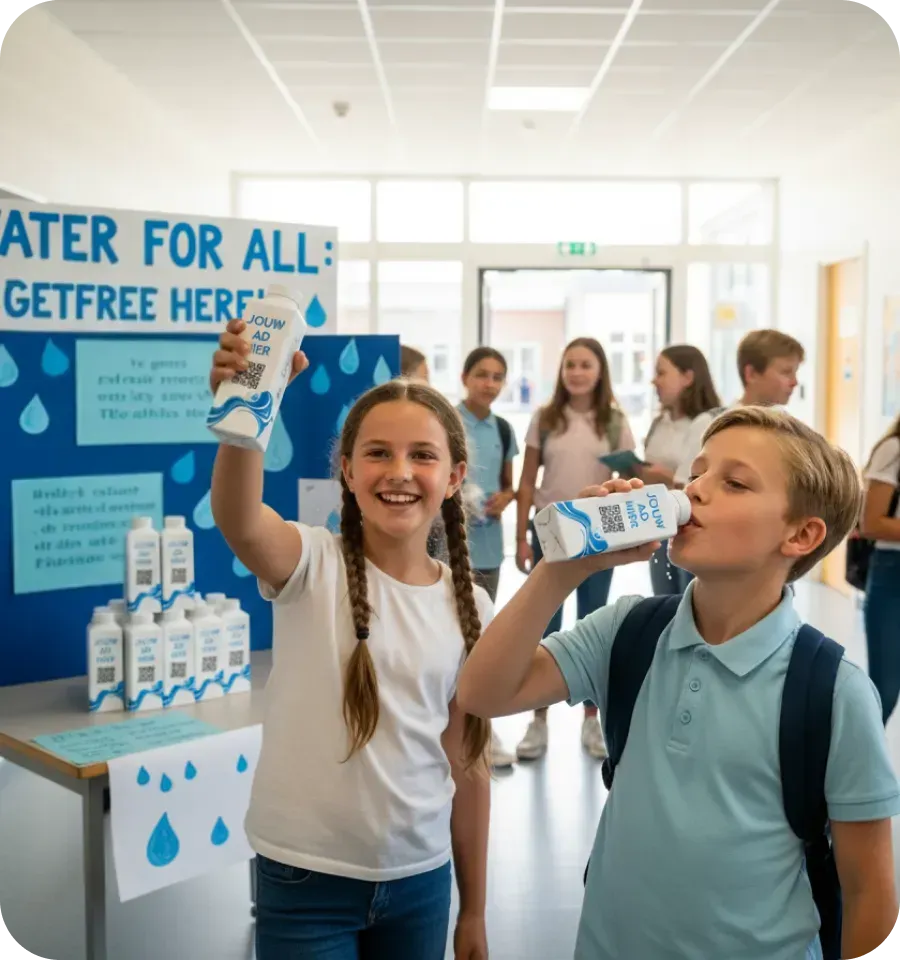 Via onze samenwerking met GetFreeWater worden merken en consumenten onderdeel van een wereldwijde beweging één pakket, één druppel, één gemeenschap tegelijk.