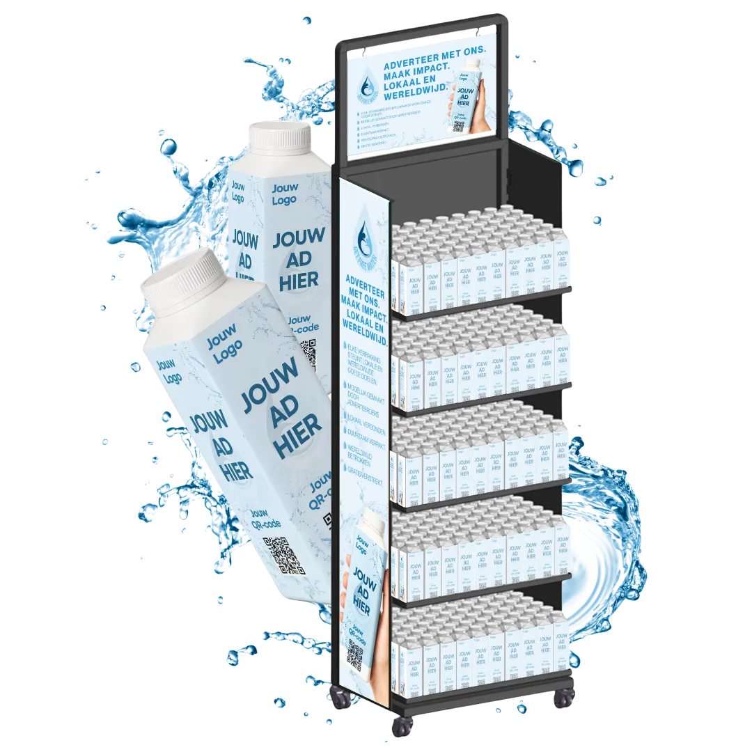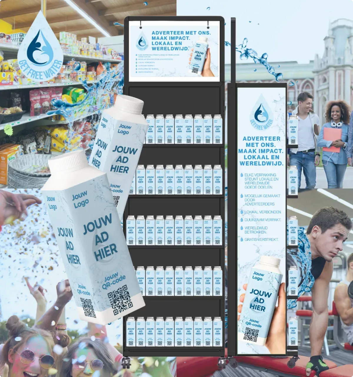 Verspreid hoogwaardig water zonder kosten voor jouw bedrijf, gefinancierd door adverteerders.